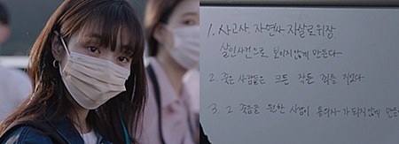 구경이에게는 잘 모르는 남들은 잘 모르는 약점이 하나 있습니다. 아무래도 일종의 트라우마같은 종류의 후유증 같은데 다른 사람들과는 남편 이야기도 잘하고 아무렇지 않은데 K와 함께 남편 이야기를 할 땐 뭔가 이상해집니다. K도 그런 약점을 잘 알고 있기에 종종 아무렇지 않은 척 남편 이야기로 자극하는 거죠. 남편(최영준)은 그런 구경이를 옆에서 위로해주는 역할을 하고 있었는데 그 누구보다 사랑했던 남편이 죽은 이유를 영원히 알 수 없게 되어버렸습니다. 생각만 해도 먹먹한 이야기죠. K가 뭔가 알고 있을 것도 같은데 살인 문제라면 남편이 가장 잘 알고 있을 테고 늘 의심하던 대로 여자 문자 문제였을까요.